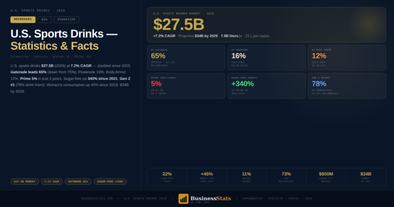 Gatorade Still 65% — But Prime Did $1.2B in 3 Years: 2026 U.S. Sports Drinks 2026 Contents In This Report…